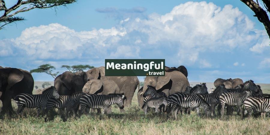 zebras and elephants on grass field.